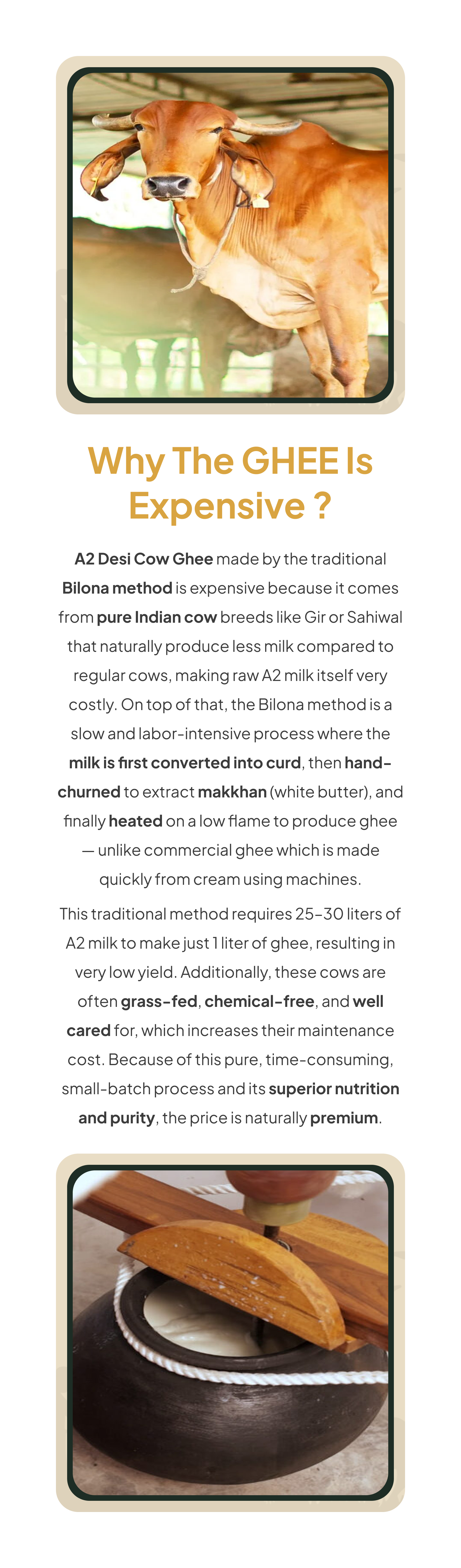 To bring back the richness of traditional Indian cooking, using time-honored processes that protect your health and enhance flavor. We source milk from healthy desi cows and follow the traditional churning process by hand. Our methods retain nutrition, flavor, and the integrity of the ingredients, just like your grandparents did.